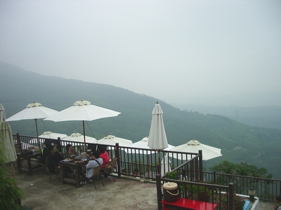 是以「老殘」在活力四射友人的哄弄之下竟動了登頂之凡心,於是風塵僕僕駕著四輪寶馬偕同「老伴」直奔往竹山挺進。雖然上山之路曲曲折折彎彎陡陡、小寶馬之哀號聲傳遍山野,老殘依然充耳不聞面不改色只管猛踩油門,也顧不得一旁的老伴早已面色鐵青兩眼發直...孰料“天不從人願”好不容易到達天梯入口前5公里處,突然大霧迷濛伸手不見五指,老殘心想要真到了天梯走不了被抬下山可更是臉上無光,於是心上大石總算得以放下,順理成章便可打道回府,下山途經【山上閱讀】卻仍有時間稍作歇息,喝喝咖啡吃吃薯球、群山美景盡收眼底,浮生偷得半日閒豈不樂哉?呵~