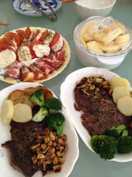 「只有牛排有點單調,晚上順便教你做一個前菜,很簡單,切一切擺盤就好,完全不用動火,絕對不會手忙腳亂,但是很好吃又看起來很厲害!」