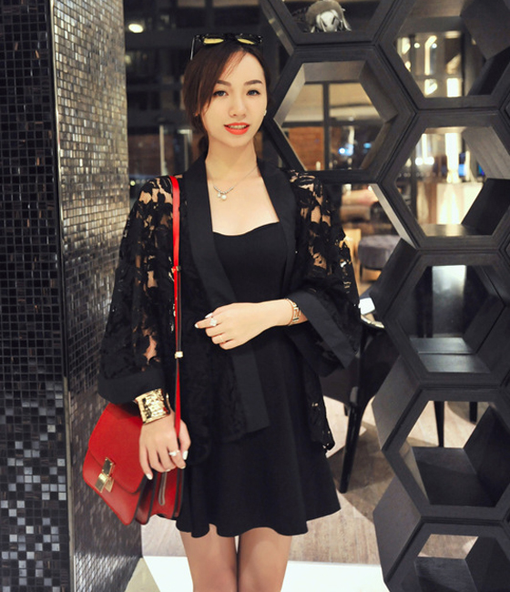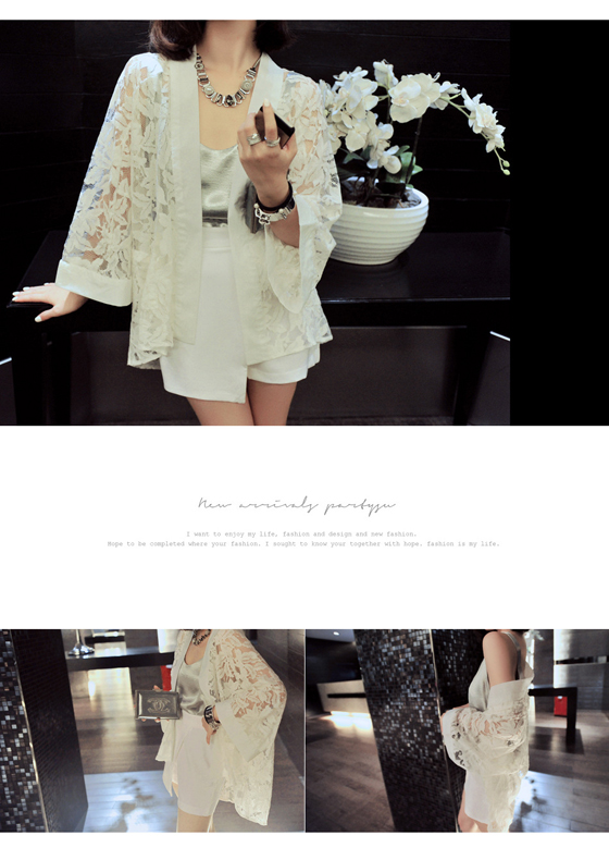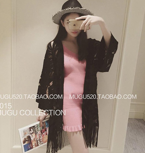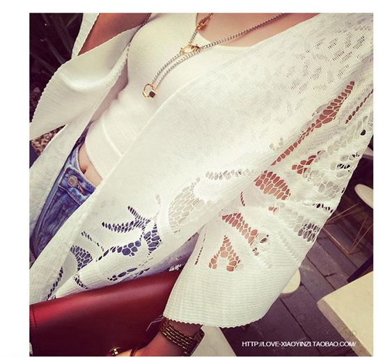 但都沒有讓我滿意的,因為看到的不是價格偏高不然就是材質不太讓我滿意,後來讓我在這裡發現了時尚韓版典雅蕾絲縷空長版罩衫外套真是太開心了