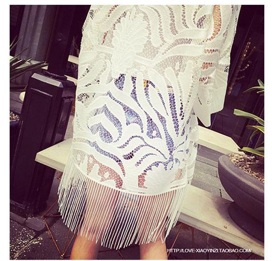 時尚韓版典雅蕾絲縷空長版罩衫外套