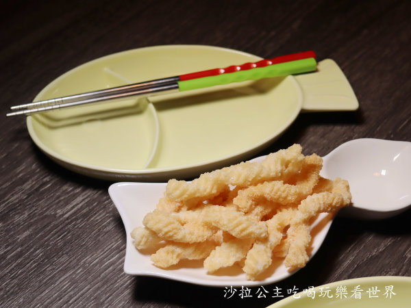 餐具是可愛的魚盤,筷子每雙不同顏色很繽紛