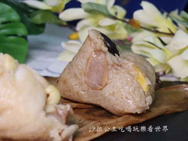 之前沙拉才吃過『華亭聚』對他的果木燻鴨記憶猶新也特別感興趣,想不到粽子理把華亭聚好吃的果木燻鴨給包進去了,肉質還是一樣軟嫩