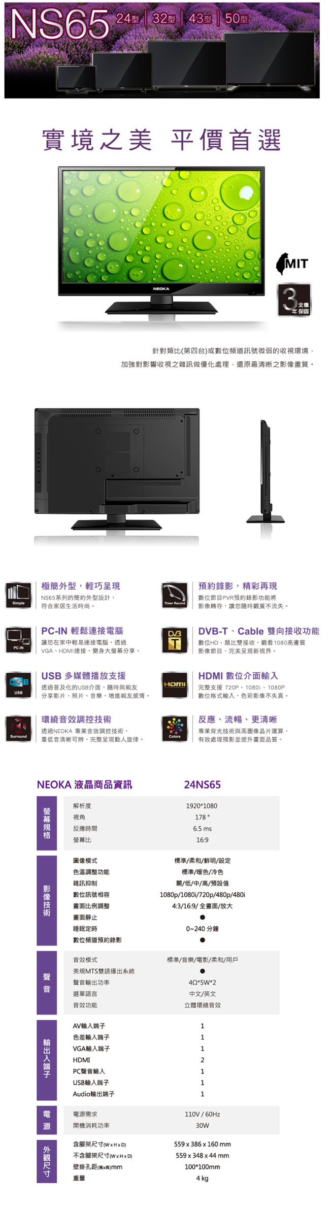 【哪裡買便宜】NEOKA新禾 24吋液晶顯示器+視訊盒24NS65-熱門產品-推薦情人節禮物