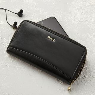 【FOCUS】原皮時尚黑造型拉鍊長夾(FGC3673)