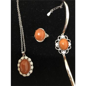 2405395 雅奇娜天然南紅赤玉典藏項鍊+戒指