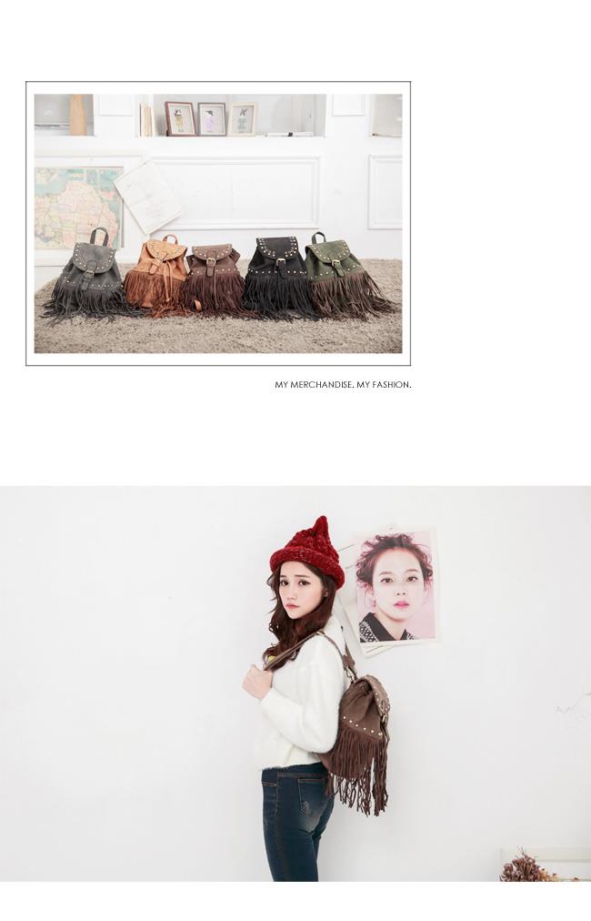 【ZARATA】韓系鉚釘流蘇造型後背包(深咖)私心大推
