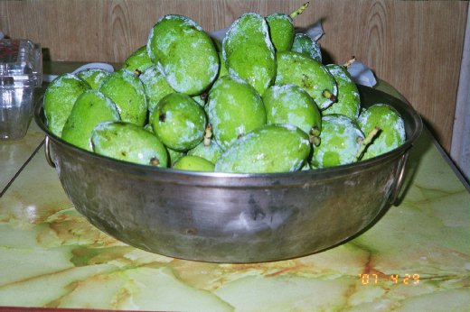 她家有做過金煌和愛文的芒果青來請我們品嚐..