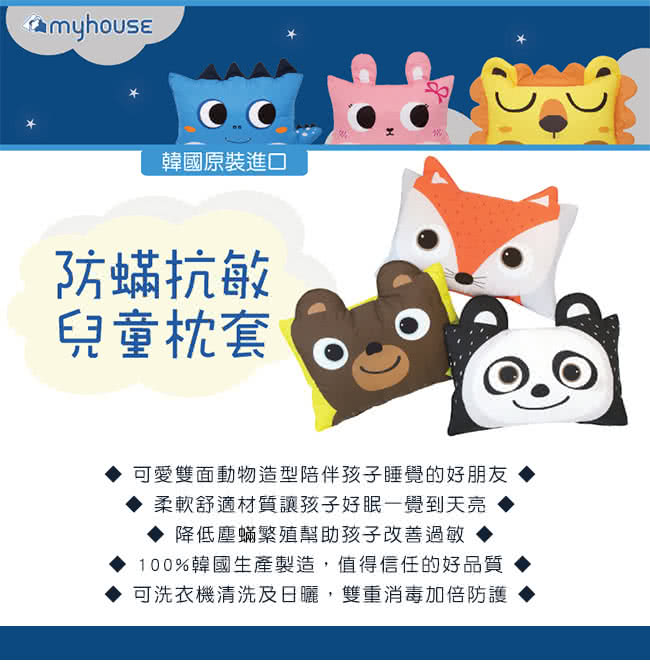 雙11特惠活動,搶到賺到:【BabyTiger 虎兒寶】MYHOUSE 韓國防敏抗敏可愛動物夥伴雙面枕頭套+枕心組 -(六款)