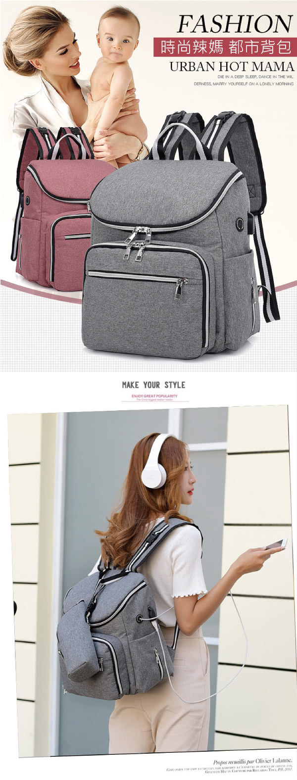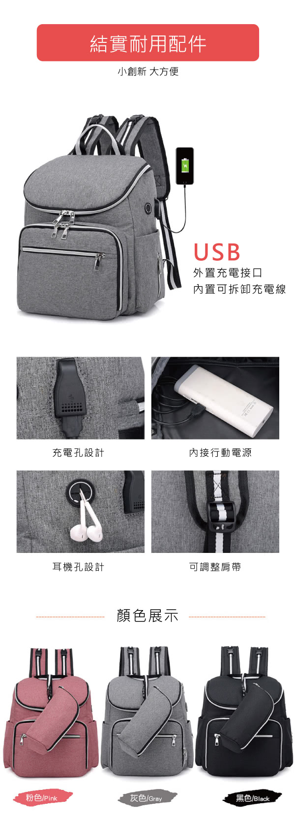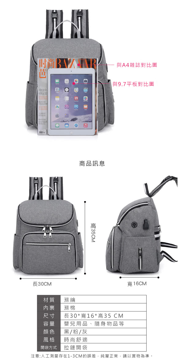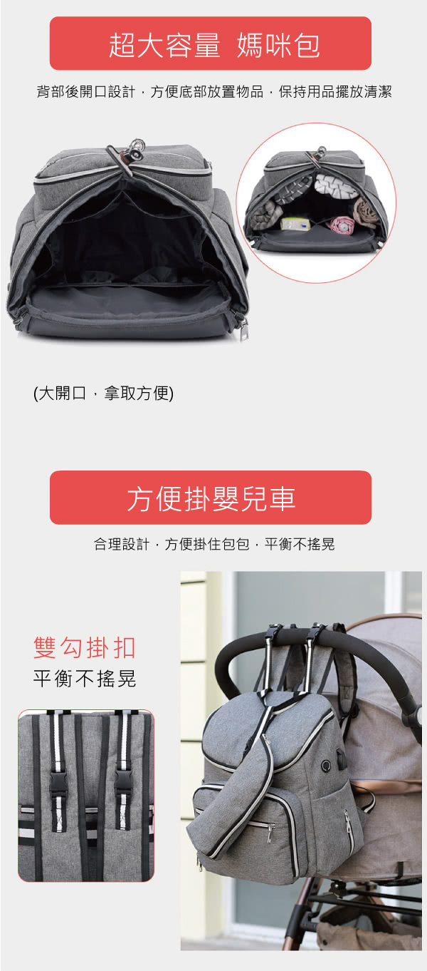 雙11特惠活動,搶到賺到:【J&H collection】多功能戶外旅行防水媽咪後背包(黑色 - 粉色 - 灰色)