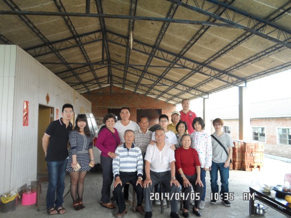 《塔位追思祖先後,世燧邀請大家到他的豬舍參觀留影。》