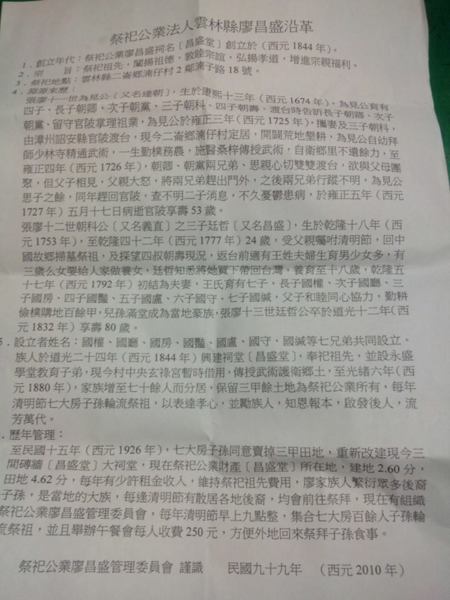 ↑【祭祀公業法人-雲林縣廖昌盛沿革】