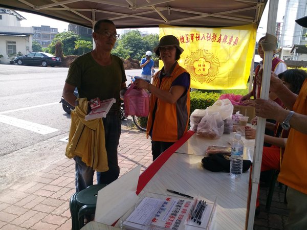 《從屏東搭火車首次來到佳冬鄉的翔哥,平常就是捐血站志工,所以今天以好人好事協會理監事的身份來做志工-好歡喜啊!》
