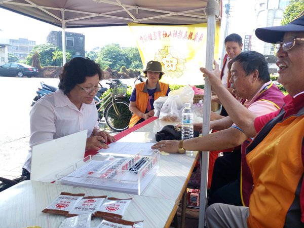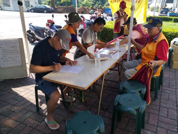 《今天來捐血填表的熱情佳冬鄉民非常踴躍》