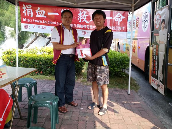 《副理事長頒發捐血結緣品--給這位從台北回鄉完成首次捐血的美女》