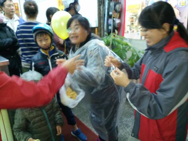 《今天莊秀蓮又自掏腰包買了洋竽片請遊行人員和沿路行人店戶,挺王進士立委的熱情受到所有人的感動。》