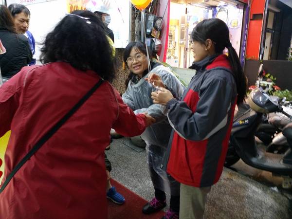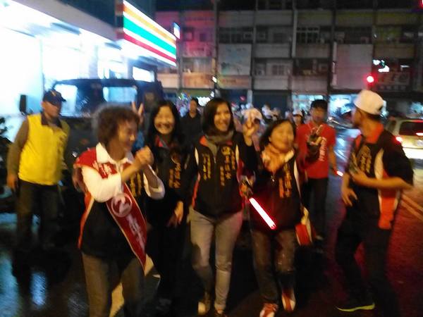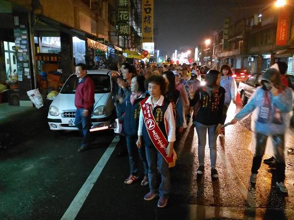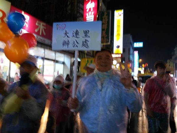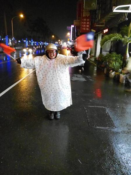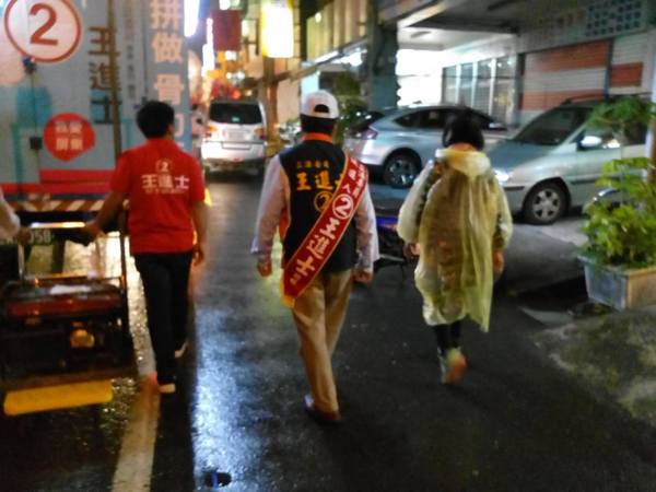 《晚上9點回到總部,王進士和夫人全程都沒穿雨衣,淋著雨向沿途熱情支持的商戶店家市民懇託支持,我們都期待明天選舉-王進士當選!》