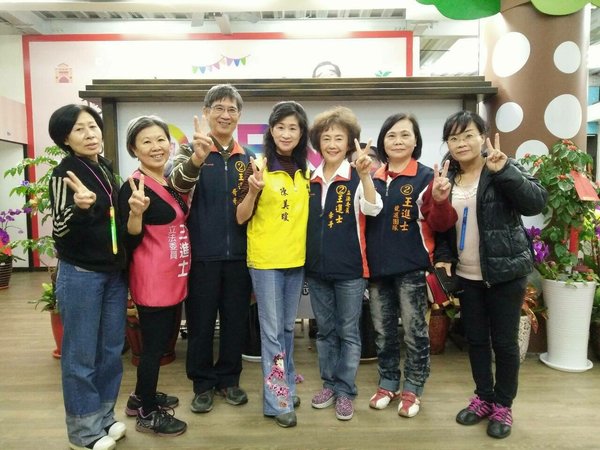 《最右邊的莊秀蓮-這陣子非常熱衷的跟著王進士的活動奔走,甚至自己買糖果餅乾分給活動現場或路人,挺王進士立委的熱情讓人感動。》