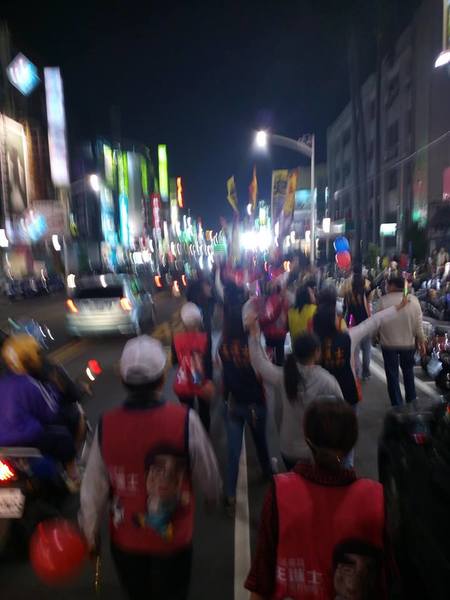 1/11日晚上新聞報導見到很溫和的王進士生氣了,被黑函抹黑激動地潑墨淋面的畫面,讓支持民眾足蕪甘心,,今晚陸興高中的遊行市民超乎熱情的走出來參加遊行,以行動支持可敬可愛的-2號王進士愛當選。