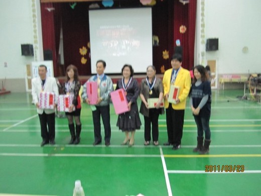 11點40分各組比賽完畢,裁判講評後公佈各組前三名並上台領獎,當主持人報出松男組第三名-廖ㄨㄨ時,我楞了一下,是我沒錯,上台接受獎牌和禮品好高興呀! 這時我才後悔沒有帶阿真老婆來當場分享我的喜悅!