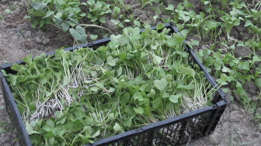 將芽菜分送給農場其他朋友時,陳老師同時也教導大家,這樣的芽菜在自家陽臺就能種植,只要準備一四方型的木箱,深度不需太深,放置一些有機泥土,將浸了一夜的種子平均灑在上面,蓋上一層薄薄的泥土,剛開始幾天保持潮濕且不要曬到太陽,很快就會發芽,長到八至十公分就可以用剪刀收成,再繼續等待第二次收成。下一次將土翻過,又可以再種第二回合的芽菜,不僅有機健康又很經濟呢!陽台上多種幾種不同的芽菜就能滿足全家的青菜需求,也能分享左鄰右舍。這次陳老師為我們帶來三種芽菜:羅蔔嬰、喬麥和葵瓜子,都是不曾嚐過的青菜滋味,讓大家既驚喜又讚嘆;一般在種子店或專賣養鴿飼料的商店都可買到不同種類的芽菜種子。