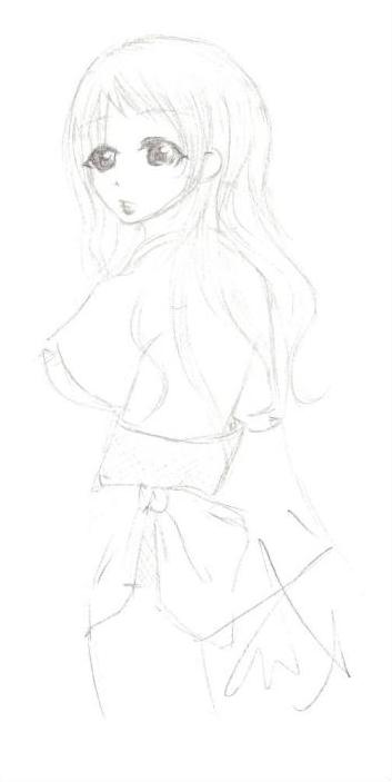 話說,這張櫻花美女又是我在上課的時候畫的呢(笑)。畫完居然異常的感覺到難得我筆下有氣質的人物;其實滿想上色的,但礙於這是課本,所以還是給她淡淡的線條,淡淡的氣質迷濛感吧!