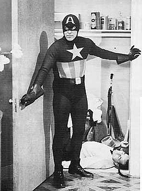 另外,附上美國隊長1991真人電影版跟1940年代影集版的劇照。(應該用不著註明年代吧XD)