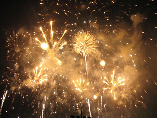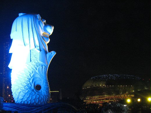 下班后和庆一起到鱼尾狮那里,对这一带不熟,兜了好大一圈才找到。到处逛逛拍拍照,跟paolo会合后就找地方坐下,霸个风水位。零零散散的人潮渐渐聚集起来,天色也越来越暗。我把墨水都榨干了,才勉强挤出一些英文词句,还好沟通的真谛是互相明了就好,在等待而无事可做的几小时总算不会太冷场,不然的话就尴尬了!五小时的等待只为了八分钟的精彩…这不就和大多数人的人生一样吗?有的甚至连短短几分钟精彩也没有,何必把自己搞得如此悲哀?小有遗憾~真介意错过了十秒钟的高潮,这里怎么没到数啊?大家只想看烟花吗?!