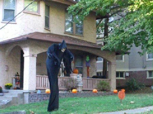 時侯未到,但喜歡裝飾的人家都出了裝飾。開車經過,還真被這個在風中晃動的鬼嚇了一跳。