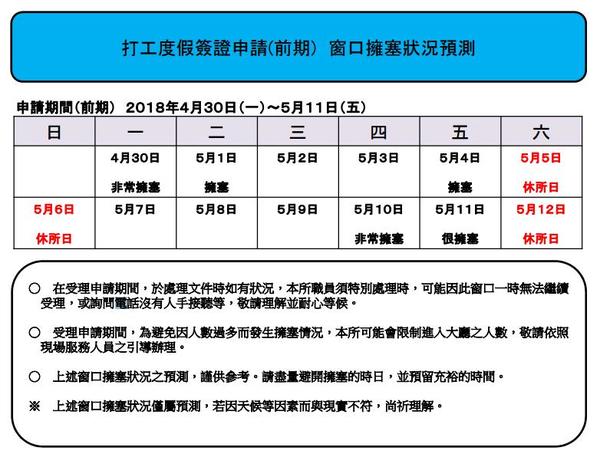 而日本台灣交流協會 也很貼心會提前發布申請打工度假簽證時,他們依照往年的經驗預估窗口出現擁塞狀況可能的日期~真的很有條有理呢!就是最上面的圖喔↑