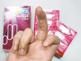 早年衛生所下鄉宣導節育及避孕,常用手指頭示範保險套用法,果真有人「依樣畫葫蘆」,把保險套套在手指頭上,老婆照樣懷孕。現在,有業者推出「指險套」,外觀、材質跟保險套一樣,不同的是,它是真的套在手指頭上的情趣用品。