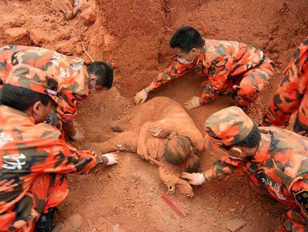 倒塌的房子已經墜毀她和她的頭,施救隊隊長把他的手,通過牆壁上的窄間隙達到女人的身體。他希望,這個女人還可以活著。