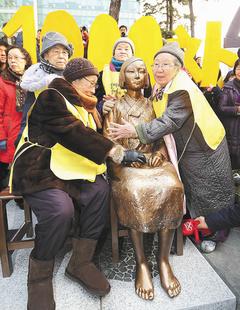 14日的集會,有慰安婦老人、聲援團體、政界人士等500多人參加,並在日本駐韓大使館對面豎起130公分高的銅像「慰安婦和平碑」。被雕塑為一名10歲的女孩坐在椅子上望向使館方向,之所以塑造這個年齡的女性銅象,是因為與被充當慰安婦的受害女性年齡相當。已經85歲的金姓老嫗表示:「當年,許多年輕的女孩被強制帶到其他國家充當日軍的性奴隸。我要求日本大使在我們全部離開人世之前,轉請日本政府正式道歉。」