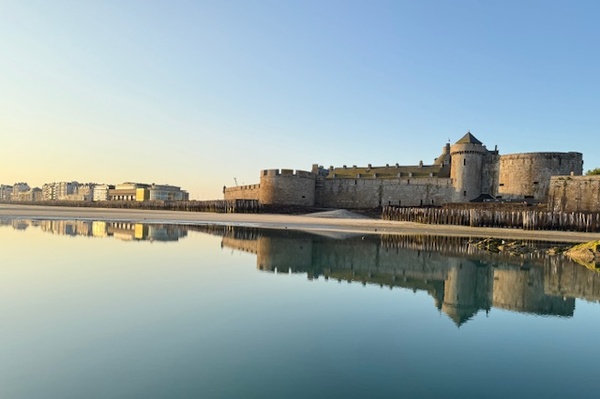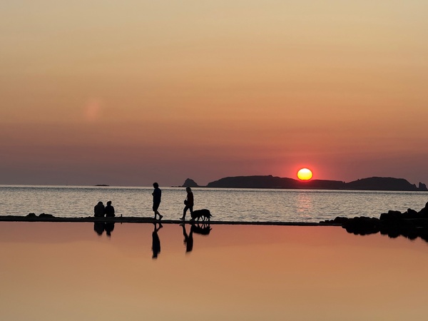 夏日的聖馬洛,日落得晚,我們在餐廳悠閒享用過海鮮餐點後,再緩步至沙灘,太陽才剛剛要入海,此時,海濱沐浴在一片霞光中,飛鳥不時滑過絢麗的天空,喧囂退散,天地無聲。