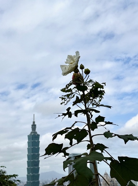 駐足這兒,從醉芙蓉旁望出去,101大樓近在咫尺,台北盡收眼底。