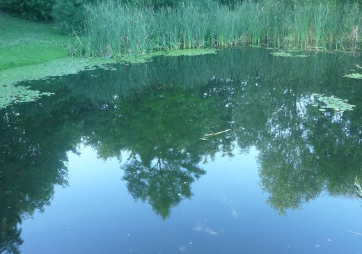 湖濱三三兩兩兔脫,天上飛鳥成群掠過,野鴨在靜闊的湖面自在悠游:看哪,湖面被鴨屁股剪出美麗的水紋,像極了女人晚宴服的曳拖擺尾。