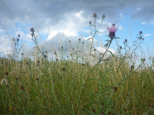 沿湖路徑高高低低,一大片蘆葦草像大地的金色毛皮,暖乎乎的,一路上白的黃的紫的野草花錯落有致:我從來沒發現小小的草花竟有這麼多種類這麼美麗。Miao撥弄著草叢:這是野桑椹,呃,還不怎麼紅。
