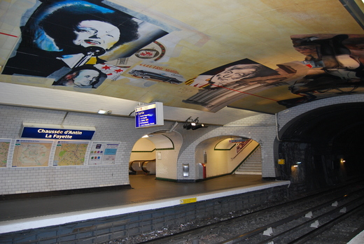 往返蒙馬特途中,在巴黎深幽的地鐵站轉來轉去,抬頭一看地鐵通道的壁貼,法國女歌手Edith Piaf仍在吟哦著<玫瑰人生>,自由女神則振臂吶喊:藝術萬歲,藝術加油!