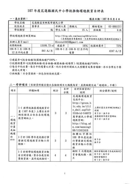1-1將學校推展環境教育計畫(107年度)上傳至自評網佐證及公告在各校環境教育網站上補件