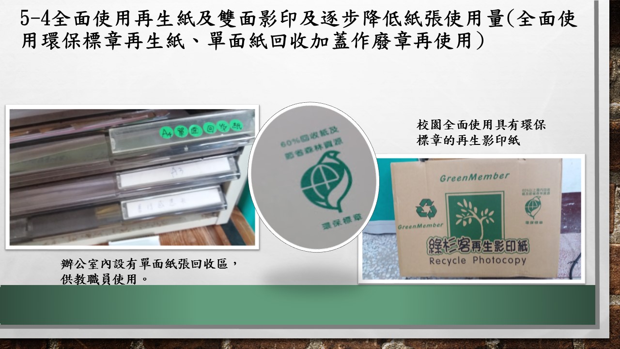 5-4全面使用再生紙及雙面影印及逐步降低紙張使用量