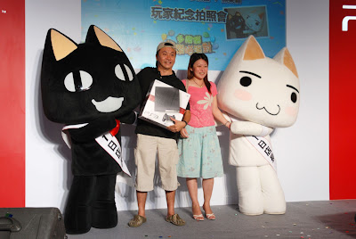 多樂跟黑樂真的是無敵可愛,一群人搶著上台與他們合照,不光是台下的粉絲們,連工作人員也都搶著上台合照,而兩隻貓最後居然還不肯回休息室,一直邊走邊玩,直到被工作人員催促快點回去 XD