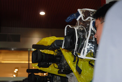 而很瞎的是,當安田哲彥先生才剛走上舞台時,天空便飄起點點細雨…雖然不大,但誰也難保不會忽然變成大雨直撲。而正當後方的電視媒體將攝影機一一罩上防水布時,幸好雨滴也就沒再繼續落下了。