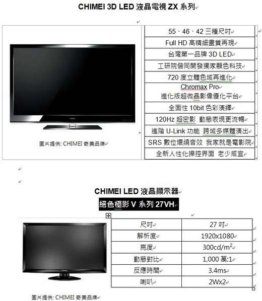 今年資訊月CHIMEI 全新推出的三款55、46、42吋 3D LED液晶電視,除有市面解析度最佳的主動式3D影像技術,並擁有前所未見最擬真的2D轉3D立體魔法顯像技術,就算不用3D片也可體驗3D超層次的影像效果