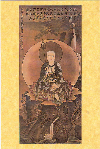 二、地藏法門以三經為主。三經者:《地藏菩薩本願經》、《地藏菩薩十輪經》、《地藏菩薩占察善惡業報經》。《本願經》中雖未顯說往生淨土之義,然其他二經則皆有之。《十輪經》云:「當生淨佛國,導師之所居。」《占察經》云: 「若人欲生他方現在淨國者,應當隨彼世界佛之名字,專意誦念,一心不亂,如上觀察者,決定得生彼佛淨國。」所以我蓮宗九祖蕅益大師,禮地藏 菩薩占察懺時發願文云:「捨身他世,生在佛前,面奉彌陀,歷事諸佛,親蒙授記,迴入塵勞,普會群迷,同歸祕藏。」由是以觀,地藏法門實與淨宗關係甚深,豈 唯殊途同歸,抑亦發趣一致。