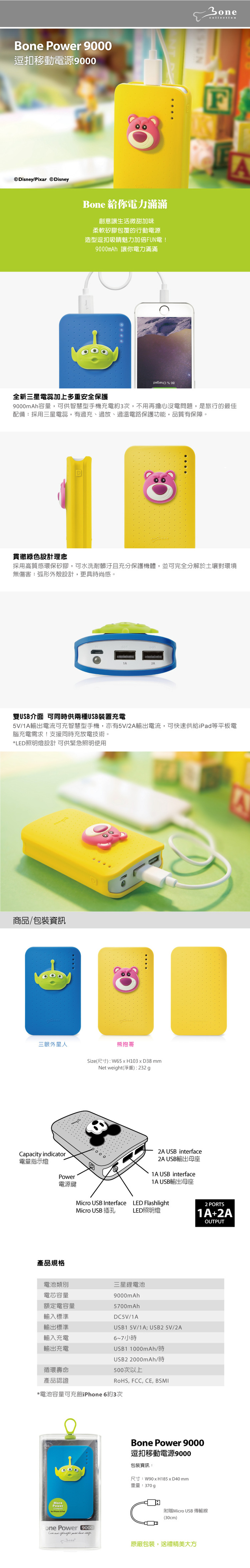 來自【有.設計uDesign】,。 雙USB介面 可同時供兩種USB裝置充電。 LED照明燈設計 可供緊急照明使用。 四段指示燈貼心設計,讓你清楚掌握。。 Disney官方授權,品質有保證,深具收藏價值。 環保矽膠材質,耐震、防汙、可水洗。9000mAh容量,可供iPhone 6手機充電約3次
