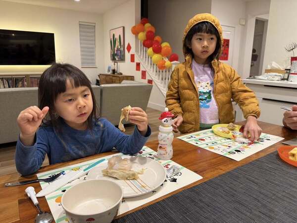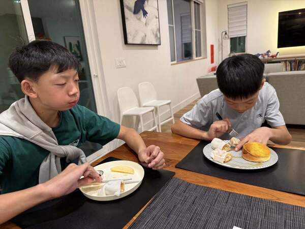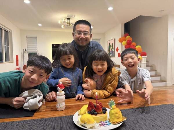 孩子們陪伴老爸舅舅吃慶生晚餐賀歲蛋糕