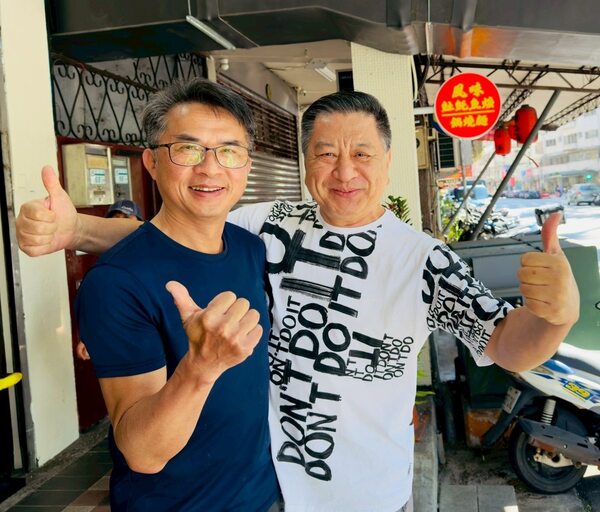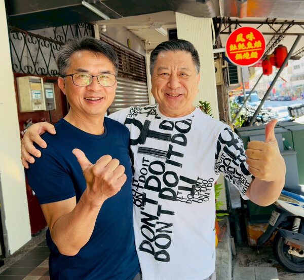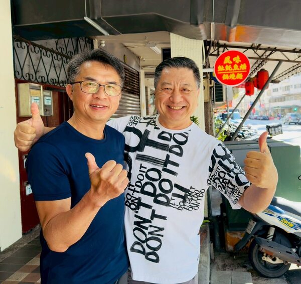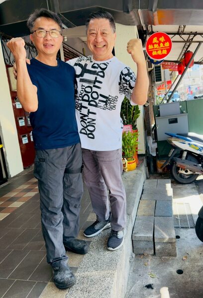 黃老板在店外看到我們走過來,笑著說「今天有營業喔」;小鹿我拉著他一起照相,連換幾個手勢,他笑著說「這是要選舉嗎」。