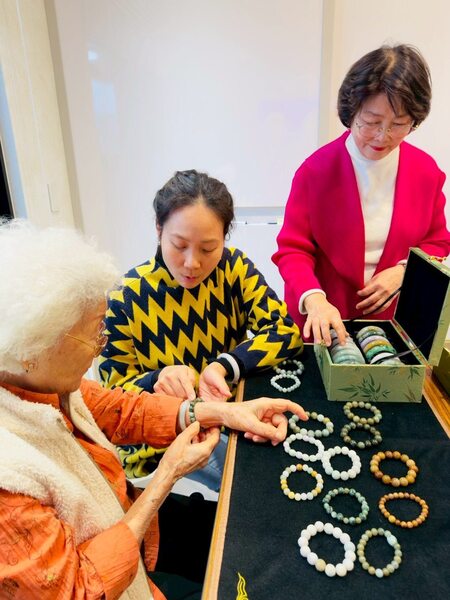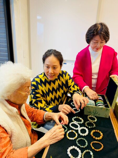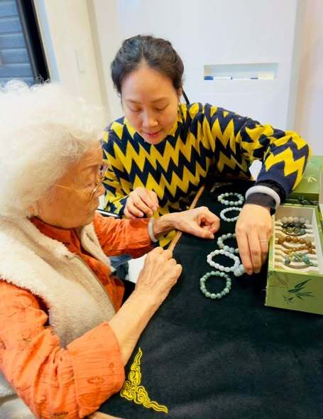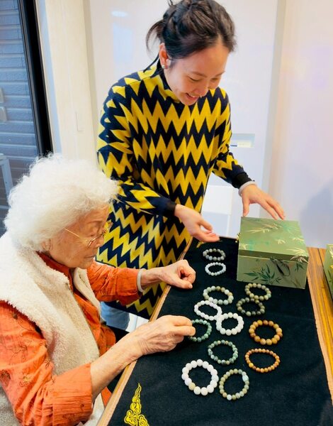 沃喬媽Linda新年致送自售玉石手環給太婆祝福歲歲平安喜樂