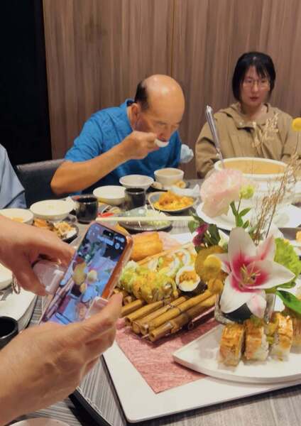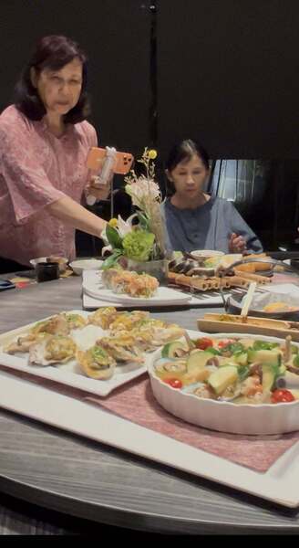 主人家「佳果水果專賣店」老板許先生忙完店務終於趕到辛苦了趕緊吃點美味炙燒鮪魚花壽司蛋黃壽司豆皮壽司
