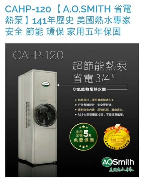 ~ AO 史密斯 ~ 超節能空氣源熱水器 CAHP-120T ~
