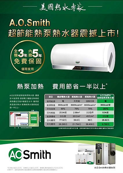 A.O. Smith熱水器洽詢電話: